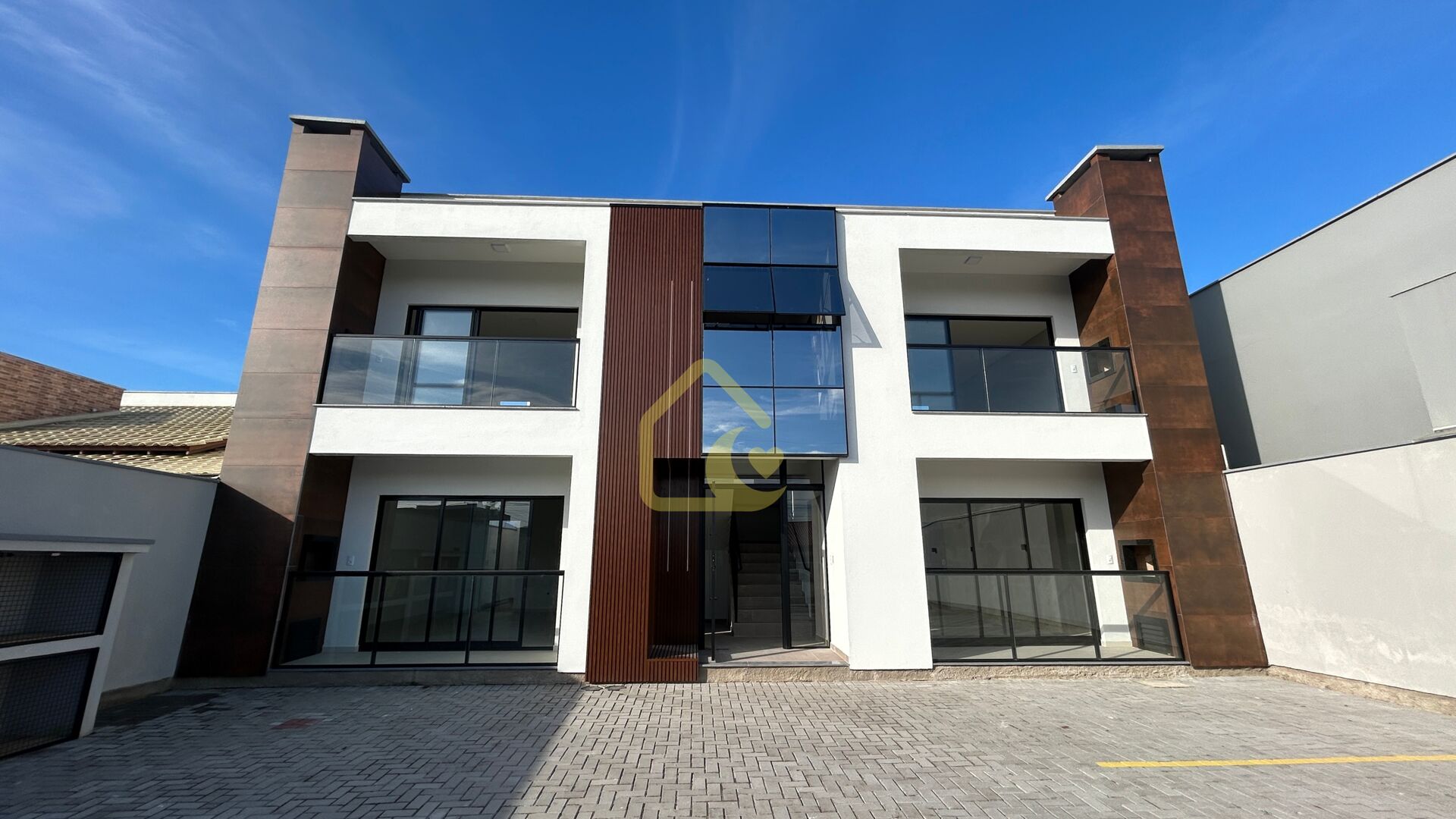 Quatro apartamentos com dois quartos sendo uma suíte, banheiro social, lavanderia, sala e cozinha conjugada, sacada com churrasqueira.