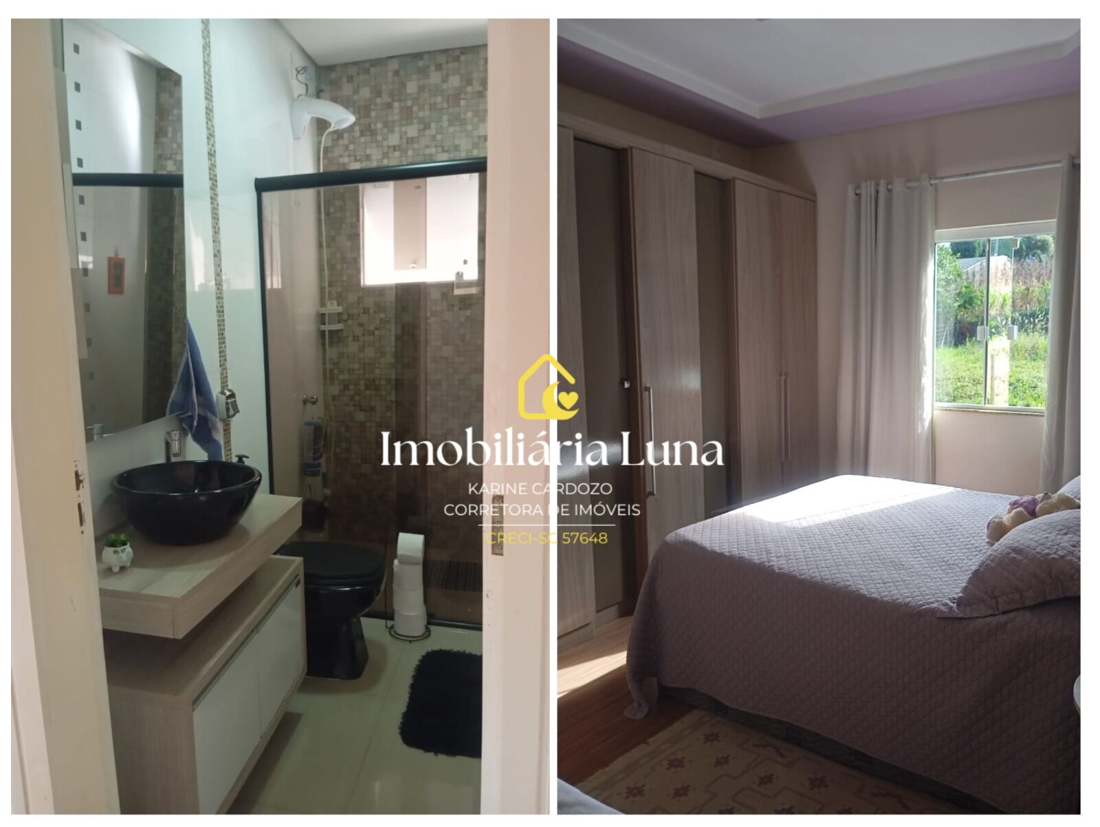 Casa de alvenaria, contendo três quartos sendo uma suíte, banheiro social, sala de tv e cozinha.